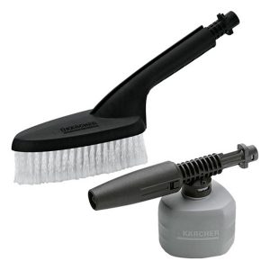 - Xe cộ: loại bỏ chất bẩn thô với tia nước cao áp, sau đó phun chất tẩy rửa Karcher lên lưới tản nhiệt và kính chắn gió; phun chất tẩy rửa chuyên dụng lên vành bánh xe; phủ lên xe chất tẩy rửa hoặc bọt xà phòng đặc biệt với chất rửa xe Karcher và tiếp tục làm việc; quét chiếc xe của bạn với bàn chải điện từ trên xuống dưới để tối ưu hóa công dụng của chất tẩy rửa.